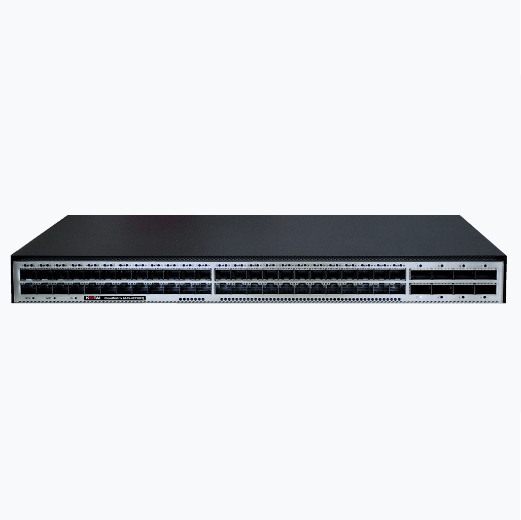 CloudMatrix 6685-48YS8CQ 交换机默认给予48个25G SFP28接口,8个100GE QSFP28接口,可顺利获得升级支持48个50G SFP56接口,8个200GE QSFP56接口。